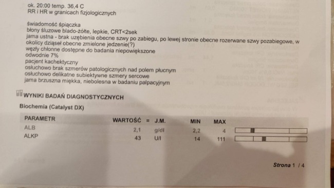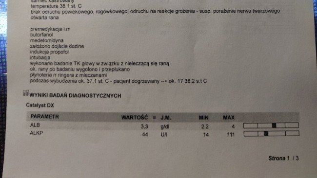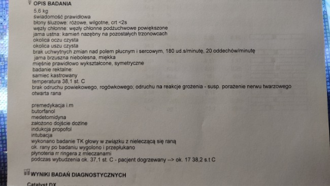 Niestety z Kostkiem umawiamy się na za dwa tygodnie za zabieg opracowania rany i usunięcia rany tyle ile potrzeba żeby ją oczyścić z ewentualnych prawdopodobny ciał obcych. Cały czas czekamy na wyniki biopsji wycinka ale pewne jest ze zabieg musi wykonać mikrochirurg ponieważ przy tej ranie jest bardzo dużo zakończeń nerwowych i jest ryzyko porażenia pyszczka jeśli coś pójdzie nie tak.