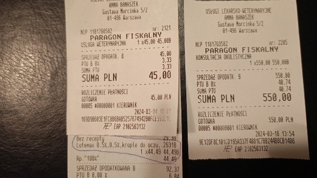 Do tego, trzeba będzie zwiększać dawkę leku- zależnie od masy ciała, bo kotek zdrowiejąc odzyska wagę (teraz schudł). Badania u okulisty, bieżąca opieka weterynaryjna i lek! - to ogromne koszty.