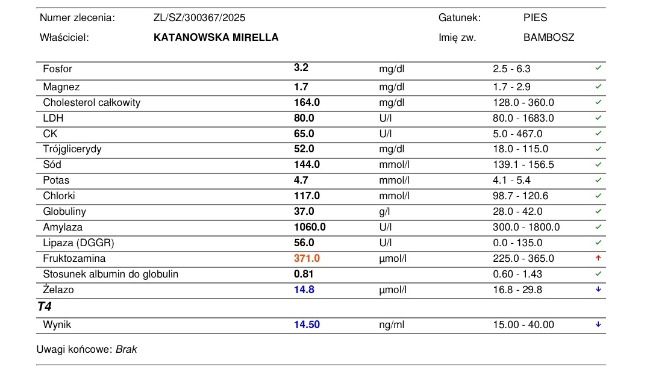 Musimy zrobić USG jamy brzusznej, rozszerzoną krew senior oraz wykonać badanie okulistyczne z powodu podejrzenia zaćmy i podwyższonego ciśnienia w oku.