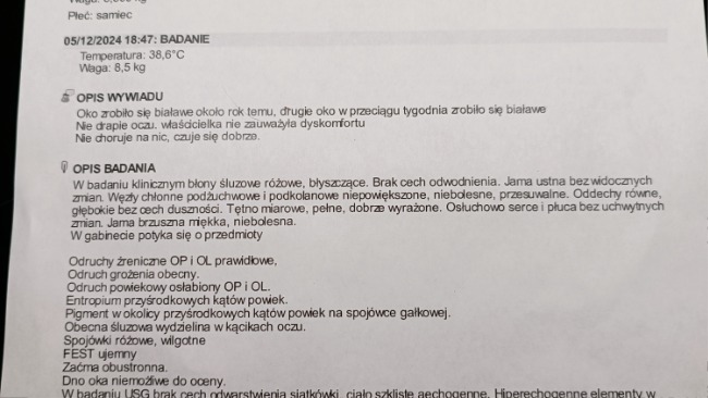 Będę regularnie wstawiać dokumentację z leczenia Puszka. W poniedziałek 9 grudnia (notabene moje urodziny😁 może cegiełka malutka zamiast zwykłego sto lat) Puszek będzie miał pobierana krew by wykluczyć choroby nerek, wątroby i cukrzycy. Jeśli ( a mam taką nadzieję) cukrzycy nie będzie, jedziemy do Warszawy do doktora Garncarza na konsultacje i badanie erg oczu (to taka kwalifikacja do zabiegu usunięcia zaćmy).