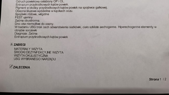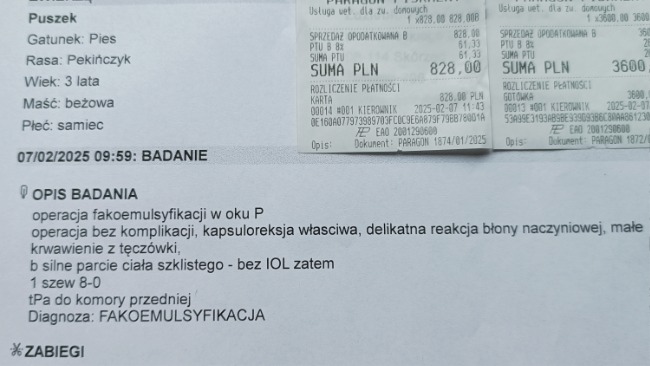Wczoraj byliśmy na erg i całe szczęście mamy dwoje oczu nadających się do.operacji. w pierwszej kolejności będzie robione to które jest zajęte przez zaćmę w 100%. Załączam paragony z wczorajszej wizyty. Prawie 1300 zł🫣