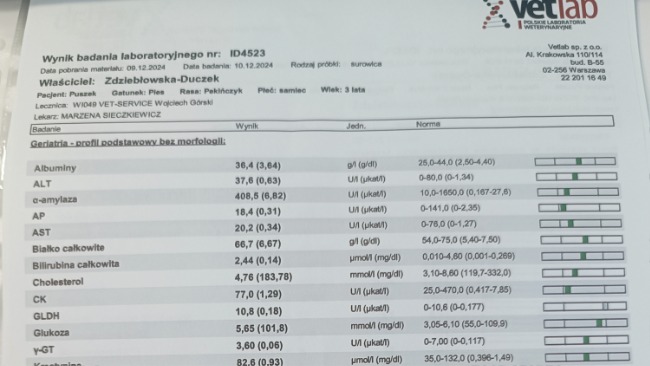 Badania pokazały że Puszek jest zdrowy, nie ma cukrzycy więc jedziemy dalej z diagnostyka.