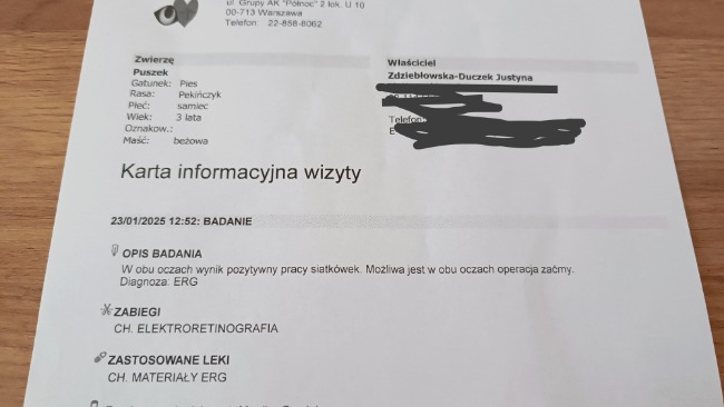 Poniżej opis badania Erg Puszka z dnia wczorajszego. 7 lutego zapisani jesteśmy na pierwszą operację oczka. Trzymajcie kciuki