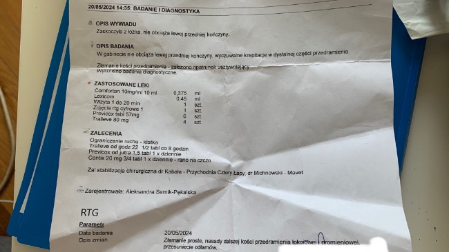 Przez 3 dni po operacji miała podawany antybiotyk poprzez zastrzyki. Niestety jednak nadal rany się troszkę babrają i przez następny tydzień będzie brać antybiotyk w tabletkach. Oprócz tego przez następne 2 tygodnie leki przeciwzapalne i przez następne 2 miesiące suplementy, które pomogą kością się zregenerować. W pierwszym tygodniu czerwca będzie miała zdejmowane szwy. RTG w 3 i 6 tygodniu pokaże nam jak kość się zrasta i kiedy będzie można wyjąć metalowe części. Jak niestety widzicie koszty pooperacyjne nadal są ogromne bo niestety wszystkie te czynności też kosztują. Zbiórka cały czas jest aktywna - każda złotówka się liczy ❤️