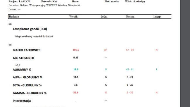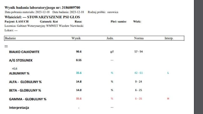 Jak wszystkie koty które do nas przychodzą, Łasuszek też miał test Felv/Fiv i był negatywny, niestety ten mały procent błędu spotkał właśnie jego :(