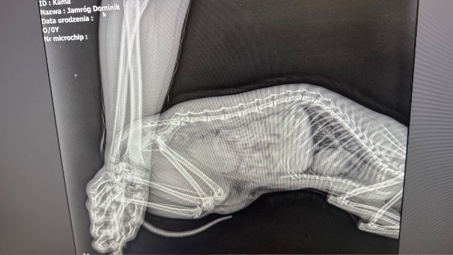 [28.03] Byłyśmy wczoraj z Kamą na wizycie kontrolnej u dr. Konopki. Rana pooperacyjna wygląda idealnie, wszystko goi się tak jak powinno. W tym momencie rokowania są optymistyczne, Kami ma czucie w łapkach i (koślawo) porusza się na nich. Pozostaje nam tylko rekonwalescencja i ograniczenie ruchu do minimum. Kicia ma teraz swoje miejsce w klatce kenelowej. Przed nami jeszcze kilkanaście dni podawania antybiotyku, probiotyku i gabapentyny. Po świętach wybieramy się na ściąganie szwów ☺️