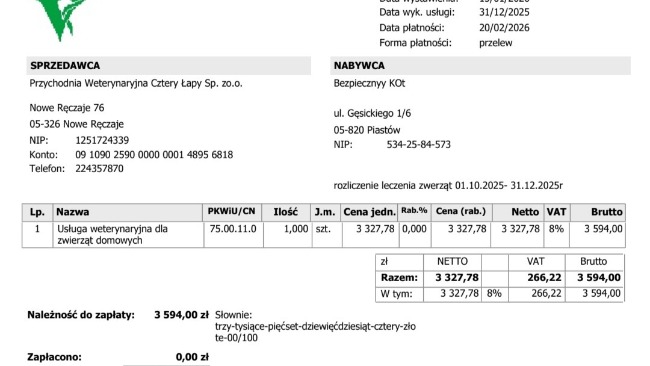 Bez zapłacenia dwóch zaległych faktur mamy zablokowaną możliwość leczenia dalej kotów.