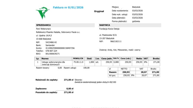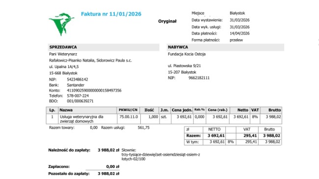 Już luty był dla nas bardzo ciężki, ale dzięki ogromnemu wysiłkowi i pomocy ludzi o dobrych sercach udało się go domknąć. Nie zdążyliśmy odbudować żadnej rezerwy finansowej i wtedy przyszedł marzec... który przyniósł faktury na ponad 4000 zł za leczenie kotów