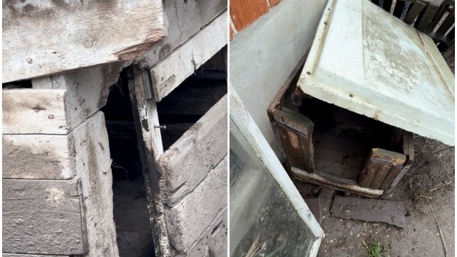 Wokół wystają gwoździe i ostre elementy, które zagrażają jego zdrowiu i życiu.