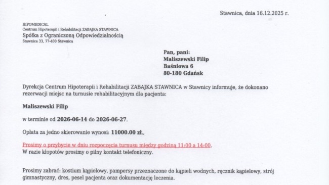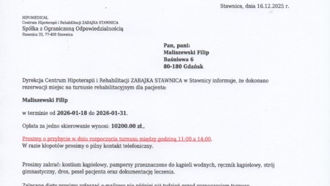 poniżej koszt poszczególnych turnusów (styczeń, czerwiec i październik) a to jest tylko część takie minimum rehabilitacji jaką Filip musi mieć. Do tego rehabilitacja w domu, masaże i usprawnianie psychoruchowe.