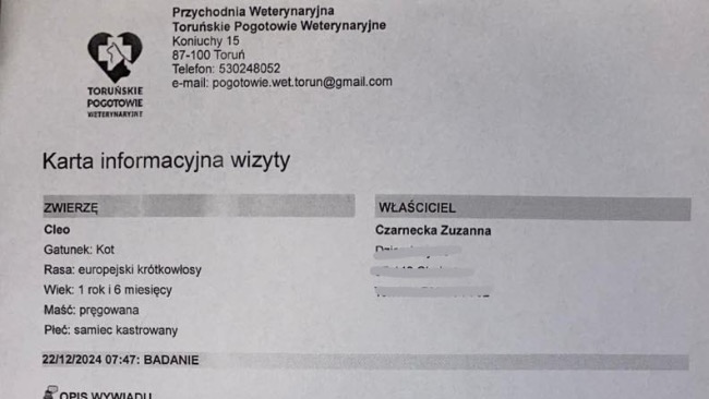 Witam, niestety z bólem serca muszę szukać pomocy w świecie. Święta w tym roku już nie będą miały żadnej magii, ponieważ nasza kochana kotka Cleo uległa wypadkowi. Nie chcę jej usypiać, ponieważ jest półtorarocznym maleństwem i ma przed sobą całe życie. Jednakże koszt amputacji i dalszego leczenia na ten moment mnie przerasta, a biedna kotka czeka na decyzję w sprawie jej życia. Licze tylko i wyłącznie na świąteczny cud🥹