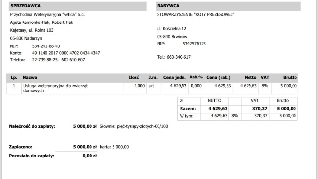 Faktura i karta po operacji w zbiórce