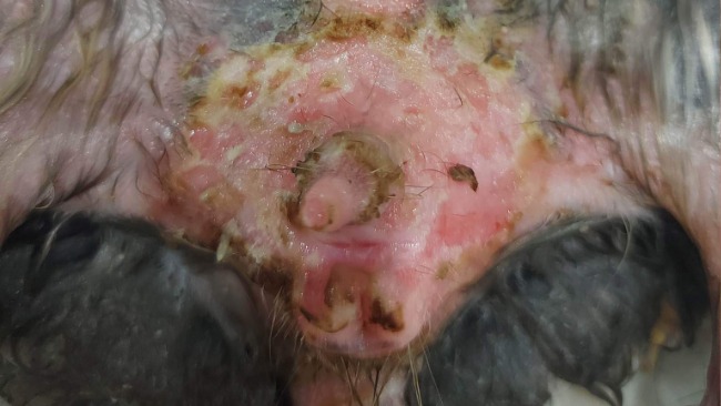 U Chałwy zostało wprowadzone już leczenie - suplementacja wątroby i nerek, antybiotykoterapia, leki gojące skórę, natomiast ze względu na młody wiek i stopień zaawansowania zmian, lekarz przypuszczaja, że problem może być wrodzony i może nie udać się wyleczyć szyszki do końca.
