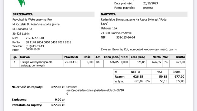 Jest to kolejna faktura, która zwyczajnie nas pogrąża. Zaległości w płatnościach piętrzą się. Błagamy Was o pomoc.