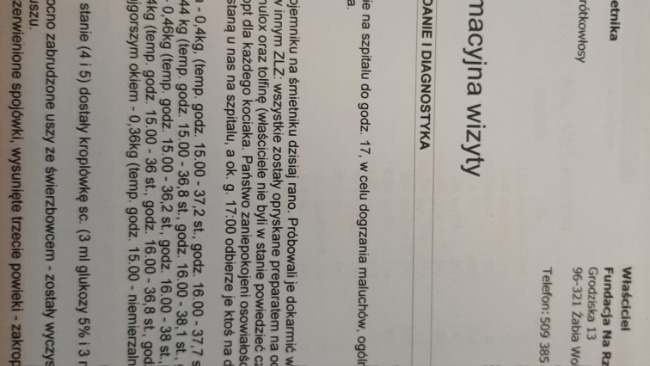 Na dzień dzisiejszy, koszt leczenia pięciu małych kociaków wynosi 2000 zł a one dalej potrzebują antybiotyku i lekarstw. Jedno z nich czeka na zabieg usunięcia oczka...
