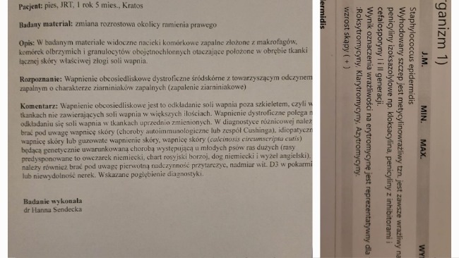 Otrzymaliśmy wyniki histopatologii i posiewu. Z posiewu wyszło, że ma gronkowca. Niestety z histopatologii nic konkretnego. Czekają nas kolejne badania... nasz vet przypuszcza, że może to być choroba Cushinga. Kolejne badania zostały zlecone.