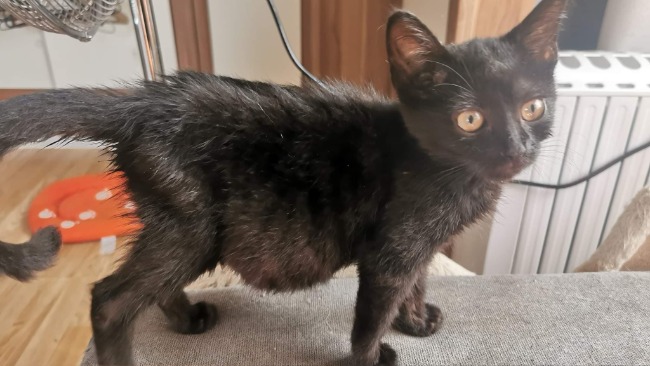 Od początku pobytu u mnie mała był mniej radosna niż inne kociaki, ale sądziłam, że jest wymęczona. Nie wiadomo co ją wcześniej w jej krótkim życiu spotkało .