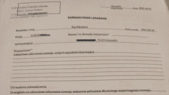 Kochani, niestety potwierdziło się to, czego nie chcieliśmy do siebie dopuscić. Zdiagnozowano u Nikodema, naszego czteroletniego synka, brata Adasia spektrum autyzmu. Pani doktor potwierdziła, że czeka nas ta sama procedura badań co u Adasia. Neurologia, metabolika, genetyka itd. Oznacza to, że teraz z obydwoma chłopcami będziemy jeździć od specjalisty do specjalisty, od szpitala do szpitala, z terapii na terapię. Na domiar złego rozpadło się nasze stare poczciwe auto, nadaje się już tylko na złom. Tak bardzo chciałabym żeby chłopcy byli zdrowi, żebyśmy nie musieli tego wszystkiego przechodzić, tych nieprzespanych i przepłakanych nocy. Żebym nie musiała patrzeć na to jak zaburzone organizmy płatają figle moim maluchom. Żebym mogła pójść do pracy i żyć jak każdy normalny człowiek. Niestety na ten moment nie jest to nam dane, chociaż wierzę, że z Waszą pomocą będzie nam dane szybciej zakończyć ten trudny czas. Jeszcze się nie poddaję, jeszcze walczę, chociaż już ostatkami sił...