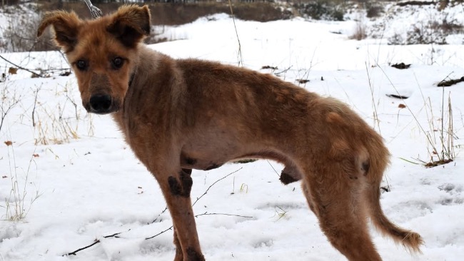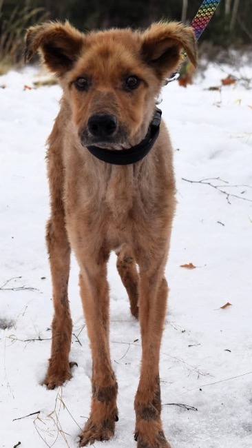 „To tylko skóra i kości, a ma dopiero ok. 4 lata. Został odebrany interwencyjnie z łańcucha. Całe swoje krótkie życie spędził w bólu, mrozie i zaniedbaniu. Gdy do nas trafił, ważył niewiele ponad 13 kg, a do dziś jego waga waha się między 13 a 15 kg. Jest bardzo wychudzony, wyczerpany, a mimo naszych starań i wielu wizyt u weterynarzy – leczenie nie przynosi efektów.”