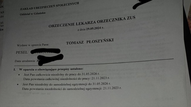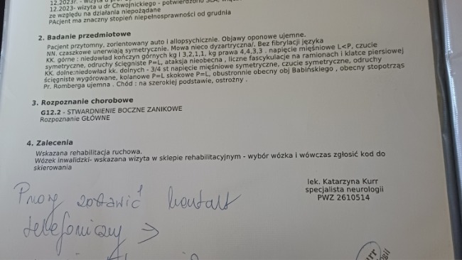 e boczne do grudnia 2023 jeszcze w miarę funkcjonowałem dziś już jestem niesamodzielny posiadam stopien znaczny niezdolny do samodzielnej egzystencji SLA — rokowaniaStwardnienie zanikowe boczne jest postępującym schorzeniem neurodegeneracyjnym, które prowadzi do osłabienia i porażenia mięśni i niewydolności mięśni. Rokowania choroby nie są pomyślne — większość osób ze stwardnieniem zanikowym bocznym żyje od 2 do 5 lat. Zyje dzięki mojej żonie, która niema prawnie obowiązku mną się zajmować ale niezostawila mnie z tym samego gdy NAJBLIZSI CZYLI MOJA RODZINA się odemnie odwrócili ona trwa przymnie każdego dnia walczy o moja sprawnosc mimo bólu. Z poprzedniej zbiórki moglismy opłacić wszelkich specjalistów zakupić potrzebny mi sprzęt do ćwiczeń porobić różnego rodzaju badania za to dziękuję z całego serca . Ale teraz poraz kolejny proszę o pomoc na zakup wciągarki schodowej( została zakupiona ) .krzesło transportowe oraz specjalną obudowę z kraty do ćwiczeń takie co są na rehabilitacjach (materac na łóżko rehabilitacyjne-dzieki wam zakupilismy) . Domu zona niedokonczy bo kazda zlotowka jest wazna mieszkamy u moich tesciow kochanych rodzicow ma Mirela jesteśmy na poddaszu zona zeby ściągnąć mnie do lekarza czy zeby gdzieś mnie zabrać siaga mnie dźwigając na swoich plecach bądź z pomoca dzieci chciała by zrobić windę lub wciągarkę( wciągarka została zakupiona) w kuchni chciałaby zrobić mi prysznic bo niema warunków by pod skosami mnie w wannie wykąpałam nie patrzy na to że kuchnia zmaleje prysznic zostal zrobiony w kuchni) dba o mnie kochany teść zrobił mi pryscic z pieniędzy ktore zebraliśmy dziękuję ale bez waszego wsparcia to się nie uda a na wsparcie i pomoc z mojej rodziny nie mam co liczyć pomóżcie razem nam się uda jest potrzebny używany samochód do przewozu dla wózka i dla mnie nie za miliony ale tani żebym mógł się przemieszczać proszę o pomoc to dzięki waszej pomocy tyle udalo się zakupić i zrobić dziękuję Tomek.