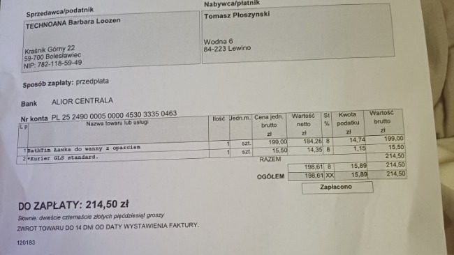 PDziękujemy dziś doszło krzesełko na wanne z oparciem materac rowniez
