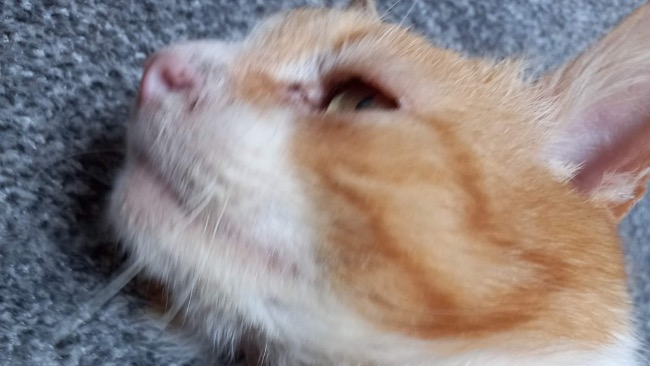 RUDASEK - bardzo chory młody kotek to jeden z tych 60 został zabrany i leczony. Długie leczenie i do końca życia musi mieć specjalna karmę.
