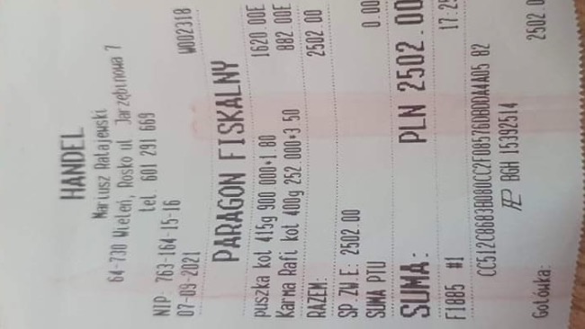 Wszystkie faktury z zakupu karmy wstawimy tutaj.