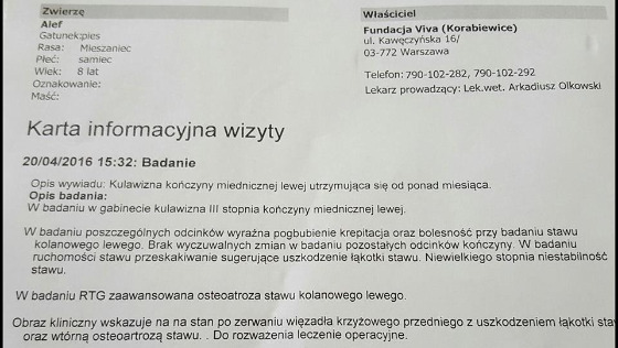 Ta diagnoza ścięła nas z nóg. Alef - aby mógł chodzić - potrzebuje pilnie operacji. Operacji bardzo kosztownej! To po Ramzesie druga tak ważna operacja i zbiórka! Koszt operacji 2300-3000 w zależności od jakości implantu (zadecyduje chirurg). Rekonwalescencja ok. 2 miesiące z czego 2 tyg w opatrunku. Bez tej operacji Alef przestanie chodzić! A to oznacza jedno - zerowe szanse adopcyjne:(... Alef nie jest popularnym psem schroniskowym, nie ma jeszcze swojego wydarzenia adopcyjnego. Przez długi czas był psem wycofanym, ale to właśnie niedawno zaczął wychodzić regularnie na spacery wraz ze swoją towarzyszką Amorową. Teraz sam w boksie przy lecznicy schroniskowej (gdzie został umieszczony dla jego bezpieczeństwa, a także konieczności monitorowania stanu zdrowia) czeka na...operację, która da mu szansę na normalne życie!