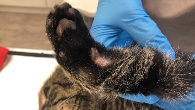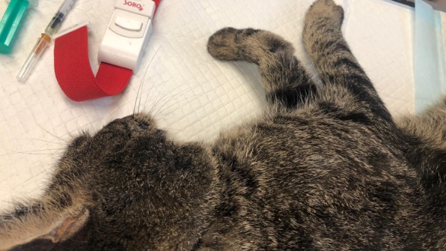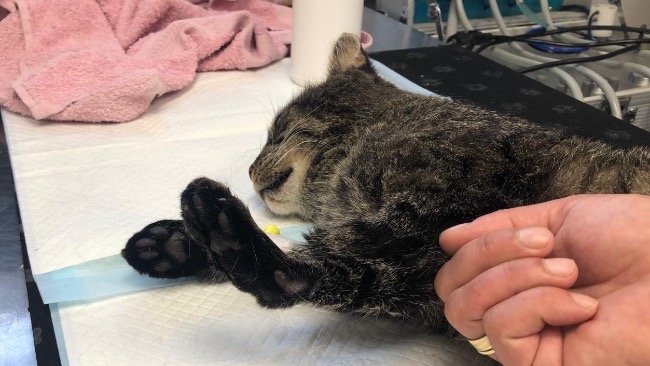 Już pierwsze badania pokazały skalę tragedii. Stare, źle zrośnięte złamania w łokciu i nadgarstku przedniej lewej łapki, sztywny bark ze zrostami, brak możliwości normalnego poruszania się 😢. Można by próbować złożyć nadgarstek, ale to niczego nie zmieni – łokieć i bark i tak nie pozwolą kotu chodzić. Każdy krok to dla niego ból.