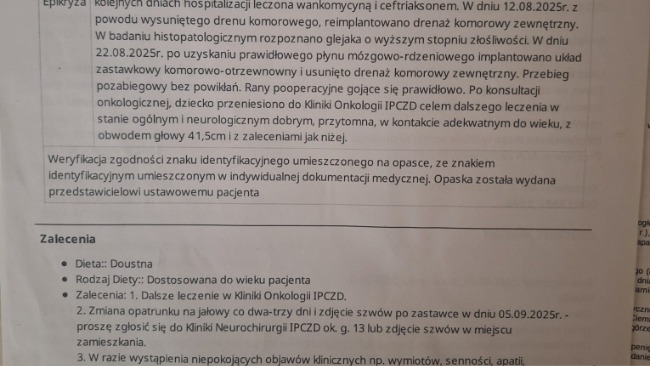 Dziś córeczka jest po kilku cyklach chemioterapii. Guz nieco się zmniejszył, a stan córeczki się ustabilizował. Przed nami jednak kolejne podania chemii, kolejne tygodnie, miesiące, a nawet lata walki o zdrowie naszego dziecka.
