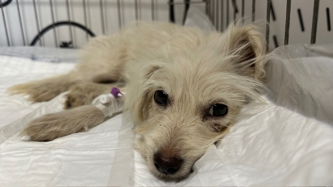 Maleńka, wychudzona do granic możliwości, cała w kleszczach, pchłach i strzyżakach sarnich. Wycieńczona, zagubiona, głodna. To tylko psie dziecko – ma zaledwie cztery miesiące i waży tylko 2,5 kg. Jej życie od początku było pasmem cierpienia.