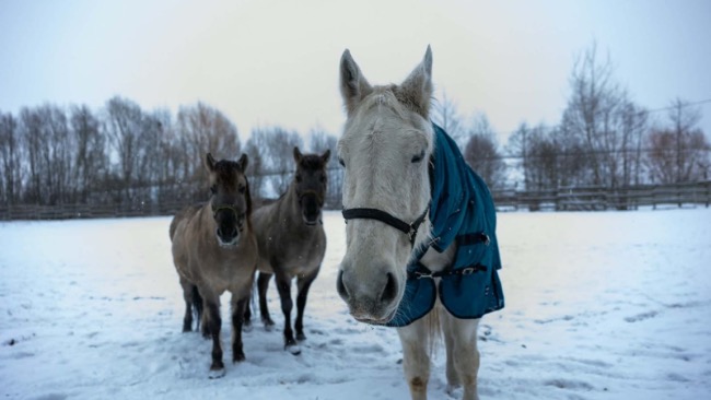 - paszę, siano, specjalistyczna karmę, witaminy i okrycia zimowe