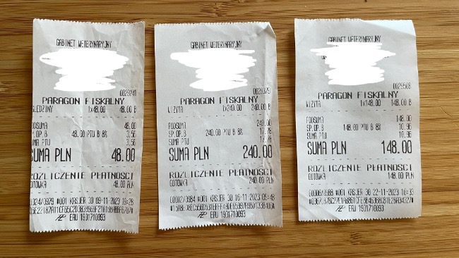 Tutaj zestawienie części rachunków od weterynarza i zamówień z Zooplus: