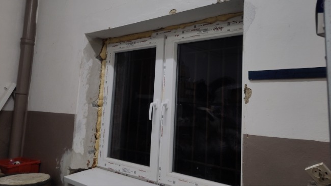 W drugim budynku od podstaw wykonaliśmy instalację wodną – nowe rury doprowadzone do toalety, pralni i zmywalni. W największym pomieszczeniu wymieniliśmy okno. Mamy także dwie pary drzwi, które wkrótce zostaną zamontowane – niestety zimą pogoda nie pozwoliła na ich instalację.