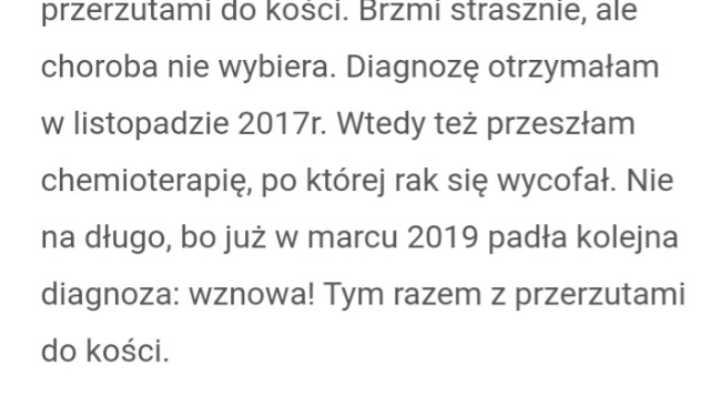 Kochani postanowiłam pomóc koleżance w zbiórce pieniazkow na leczenie w Niemczech Raka. Marlena bo o niej mowa ma 37lat I sama wychowuje synka. Jest wspaniała kobietą oraz mamą. Proszę was wszystkich o pomoc w zbiorce. Wszystkie pieniażki zpsyana przelane na konto pomagam.pl/marlenamolenda