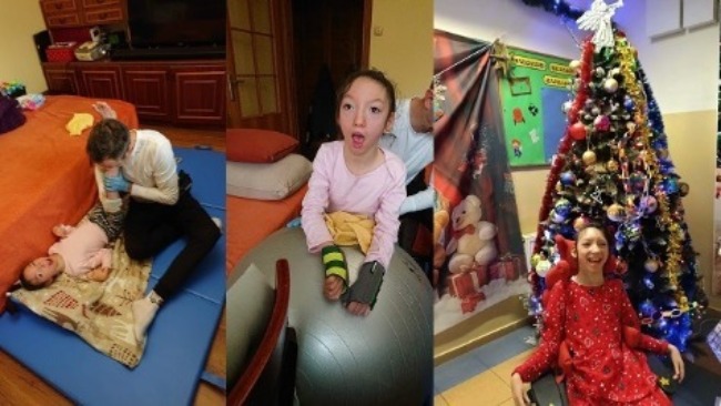 Nadia dzielnie ćwiczy z panem Piotrem i mimo codziennych wyzwań nie poddaje się. W ostatnim czasie miała podane iniekcje z toksyny, których celem było zmniejszenie spastyczności. Już podczas ćwiczeń można było zauważyć pozytywne efekty – zwiększył się zakres ruchu, szczególnie w zgięciu i odwiedzeniu w obręczy barkowej, nadgarstkach oraz palcach rączek.