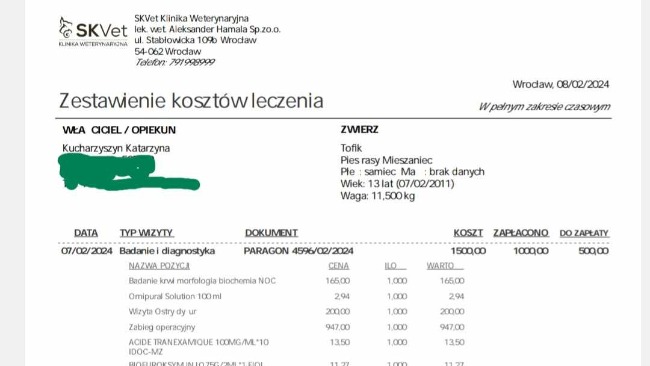 Poniżej przedstawiamy wypisy i zestawienie dotychczasowych kosztów ale to niestety nie jest koniec. Tofik będzie potrzebował jeszcze wielu wizyt, opatrunków, leków i być może rehabilitacji.