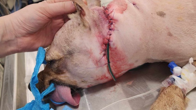 Przepraszam bo dawno nie było wieści, a Tofik po pijawkach, które doskonale udrożniły i oczyściły miejsca szycia oraz koktajlu antybiotyków i witamin czuje się coraz lepiej. W zachwycającym tempie dochodzi do siebie, nie ma absolutnie żadnej traumy i chętnie wychodzi na spacery (na szczęście! tego obawialiśmy się równie mocno jak samego gojenia ran fizycznych).