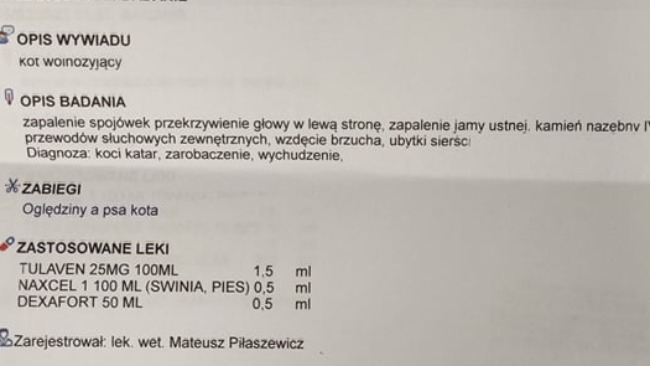 Ponownie dziękujemy za pomoc i możliwość kontynuacji leczenia kotka Dziadziu i innych potrzebujących opieki zwierząt.