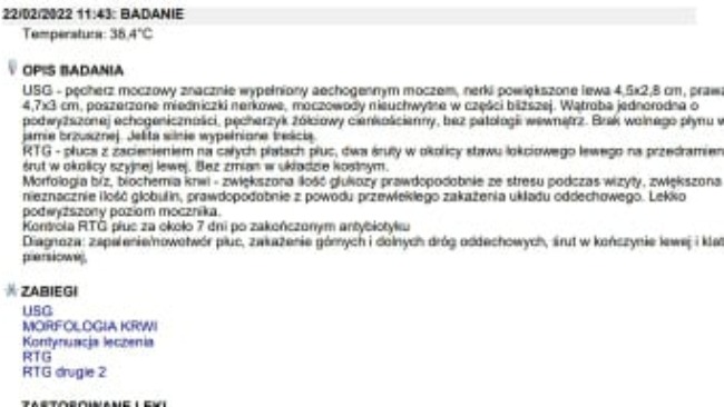22/02/2022 to data kolejnej wizyty weterynaryjnej i badania kotka Dziadziu. Wykonano RTG, USG oraz morfologię krwi. Wyniki kotka są następujące: nerki powiększone, wskaźnik mocznika podwyższony, płuca z zaciemnieniem na całych płatach płuc, dwa śruty w okolicy stawu łokciowego na przedramieniu, śrut w okolicy szyjnej lewej. Diagnoza: zapalenie płuc, zakażenie górnych i dolnych dróg oddechowych, śruty w kończynie lewej i klatce piersiowej:( Kontrola za około 7 dni, RTG płuc po zakończonym antybiotyku.