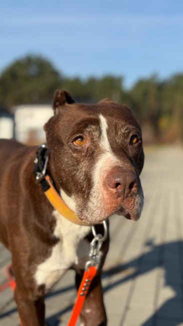 Babsi to ok. 8 letnia sunia. Okazała się rewelacyjnym psem z charakteru. Miękka, stonowana, rezolutna, nad wyraz stabilna, z sercem na dłoni.