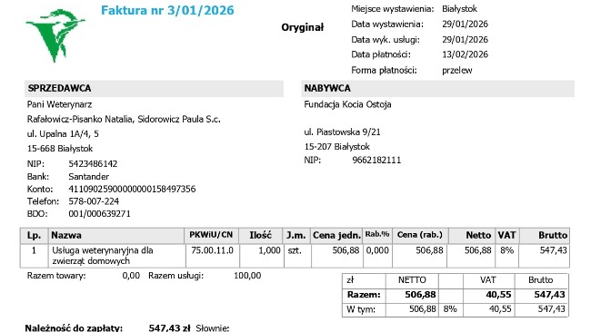 Jesteśmy niewielką Fundacją z Białegostoku, niesiemy pomoc potrzebującym zwierzętom, głównie kotom.