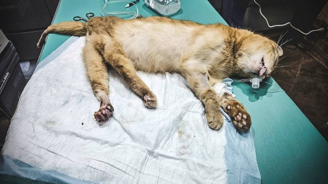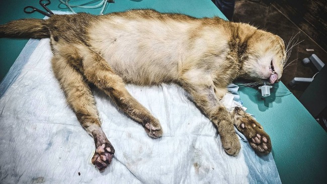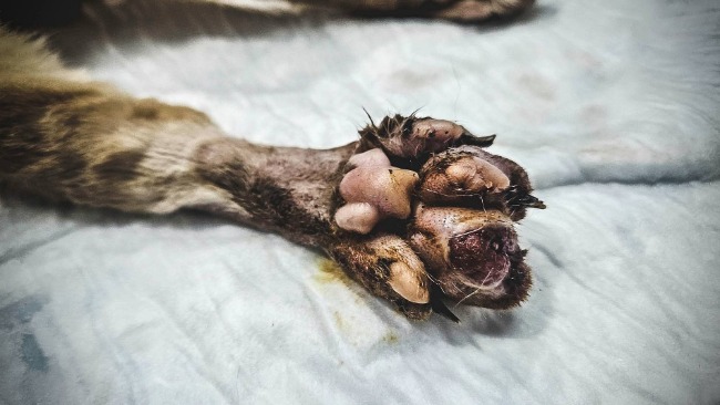 Ale natura bywa okrutna. Bo wraz z uszkodzeniem łapek pojawiły się poważne zaburzenia behawioralne. Felix, nie czując bólu, zaczął sam siebie ranić. Codziennie, bez kontroli, bez świadomości, jak bardzo sobie szkodzi. Gryzie swoje bezwładne ciało bardzo mocno, bo nie czuje bólu. Pojawiła się martwica, która postępowała, konieczne było amputowanie części jednej łapki.