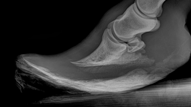 Zalecenia: Terapia przeciw bólowa i przeciw zapalna w celu ograniczenia bólu stawu barkowego . Werkowanie kopyt uwzględniając położenie kości kopytowej w puszce kopytowej najlepiej na sedacji