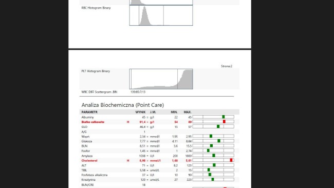 – podwyższone białko całkowite zwykle związane z odwodnieniem