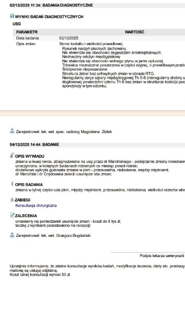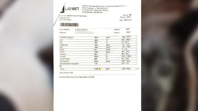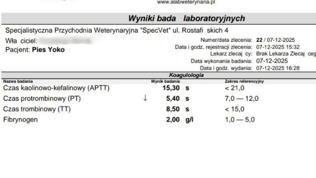 Szanowni Państwo, dziś garść nowych wieści o Yoko. W poniedziałek przeszła operację usunięcia nerki, zgrubienie w pachwinie okazało się guzem wielkości jajka przepiórczego – dla psiaka jej rozmiarów, był bardzo duży. Zarówno nerka, jak i guz z pachwiny trafiły do laboratorium na badania histo-patologiczne.