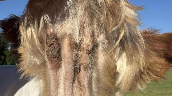👉 Uszy – zagrzybione, w stanie zapalnym, swędzące, bolące, cuchnące.