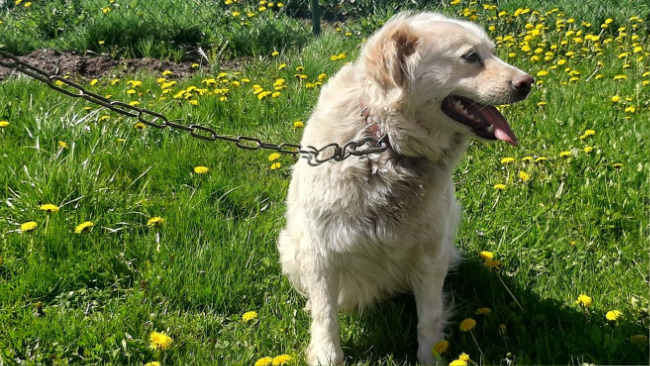 Niestety jeszcze jako mały piesek został przypięty nałańcuch obok swojej mamy. Kiedy w końcu zerwał się z łańcucha błąkał po wsi od domu do domu przez kilka miesięcy. Żył obok człowieka, jednocześnie bojąc się go.