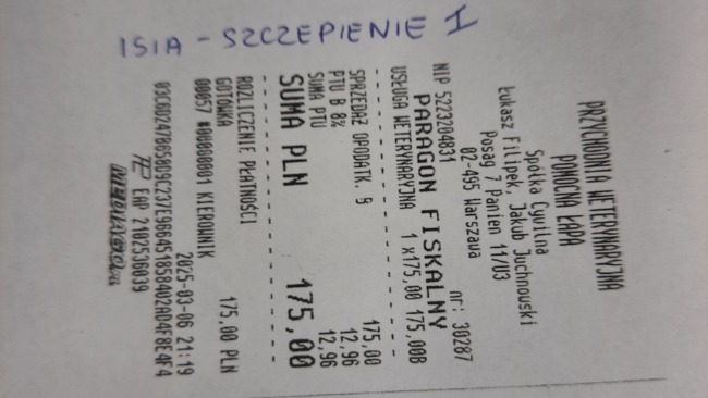 Pomimo dwutygodniowej kwarantanny, kosztem połączenia trzech domowych, sterylnie żyjących mruczków z trzema kotkami wolno żyjącymi są ciągnące się od połowy grudnia infekcje górnych dróg oddechowych całej szóstki. Pierwszy zachorował brat Isi, następnie po kolei wszystkie pozostałe zarażają się od siebie, niektóre wyleczone przechodzą wznowienie infekcji. Na stronie zbiórki umieszczone będą wszystkie dokumenty potwierdzające wydatki.