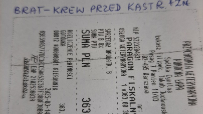 Sama operacja kosztuje 3500 zł. Doliczając konsultacje lekarskie, badania przed operacją i po operacji, leki, rehabilitację chcielibyśmy aby koszt zamknął się w 4500 zł.